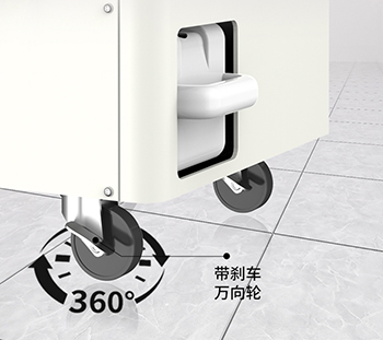 机器采用了带有刹车的万向轮设计,方便移动到任意空间角落进行使用。
